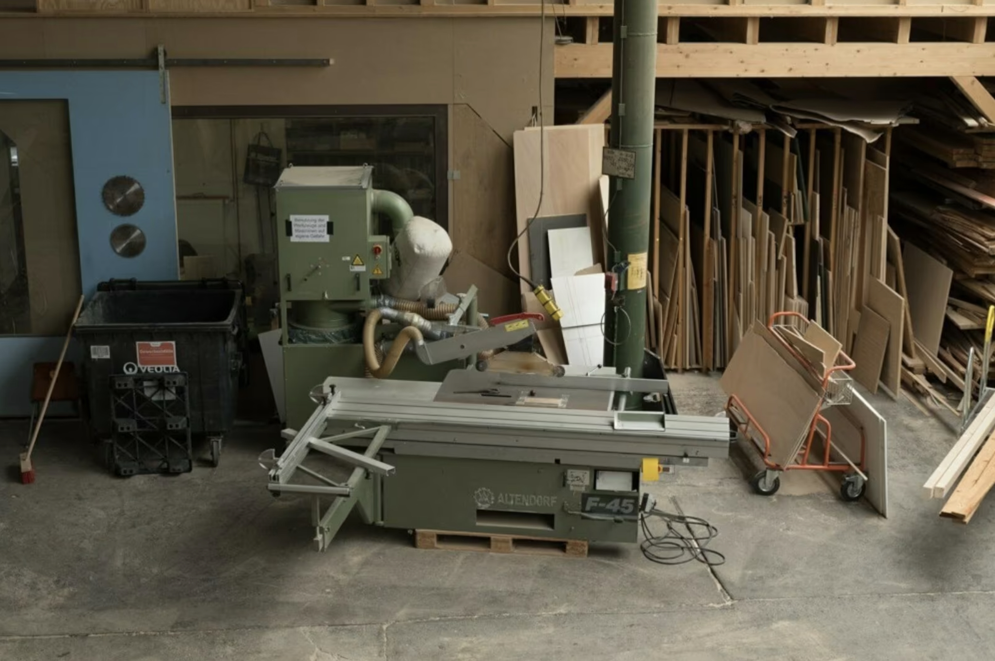 Ein ruhiger, heller Raum mit Zugang zur großen Halle und allen Maschinen, perfekt für professionelle Holzarbeiten oder dein eigenes kreatives Studio.